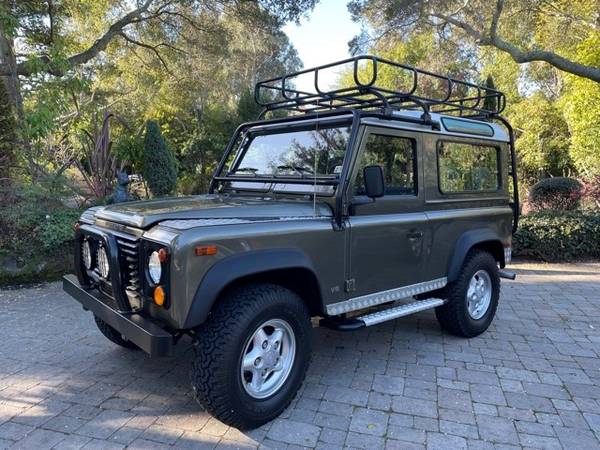 1997 Land Rover NAS Defender 90 Limited Edition #255/300, 16,500 Original Miles. Willow Green with grey twill vinyl seat upholstery, full time 4 wheel drive with high-low range, automatic transmission, air conditioning, factory glass sunroof, Freestyle alloy wheels, 4 side facing rear seats with seat belts, A-bar front brush guard with two Hella driving lights, Limited Edition factory options of: Willow Green metallic paint, full sleeper rack with two ladders, front wing and lower panel diamond plating, side steps with diamond plating, updated hi-fi sound system, Land Rover heavy duty front rubber mats and rear load space protector, an authentic North American Specification D90, and #255 of just 300 Limited Edition station wagons built in the final year of import by Land Rover North America.