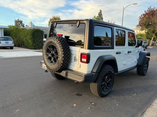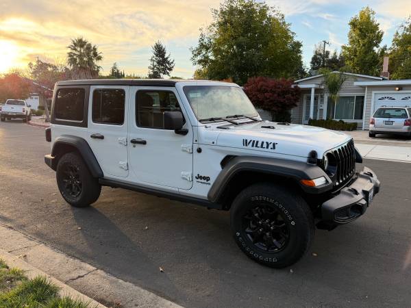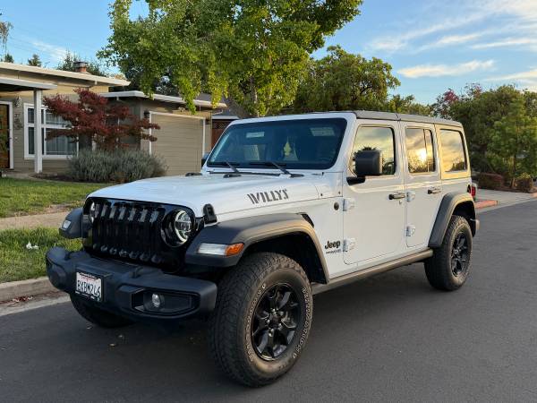 Up for sale is a Super clean 2021 Jeep Wrangler Unlimited Willys- 4X4 -One Owner car- Clean Ca Title & Carfax - Never been involved in any accident or incident (Carfax report will be presented) Always garage Kept. Paint is in excellent condition, no faded anywhere, no dents, scrapes. The interior is in exceptional condition. It will be very hard to find one better maintained from day one by original owner.