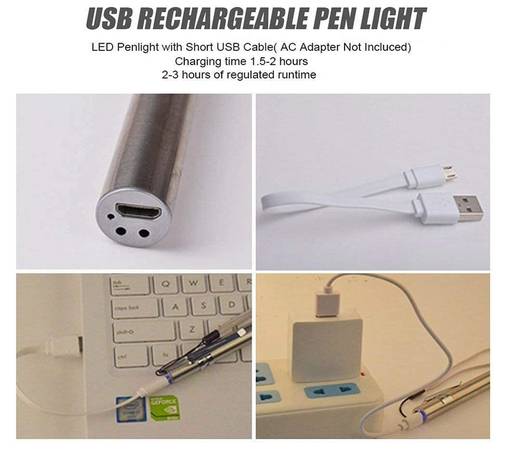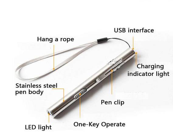 "USB Rechargeable Pen Light Portable Pocket LED Flashlight with Stainless Steel"