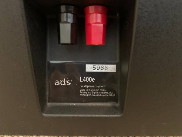 ADS L400e 2-way speakers with rare OEM stands. Excellent condition. Plug and play. Woofers just rebuilt by Richard So. Cabinets 9/10, see pics. Consecutive serial numbers. Will not sell stands separately. Pick up preferred, but will consider shipping on your dime and after full payment. $499/obo. Open to trades for cash and L810's w/metal grills.