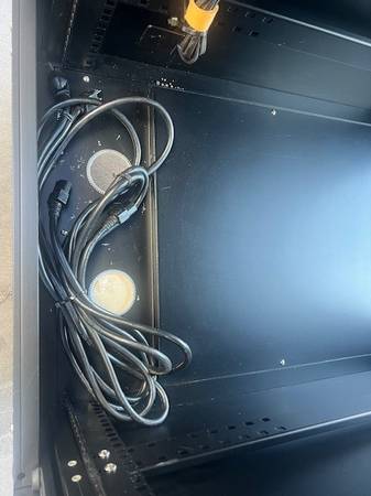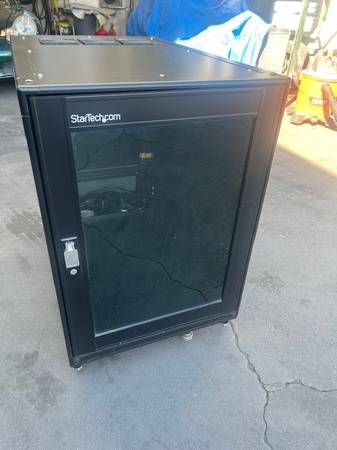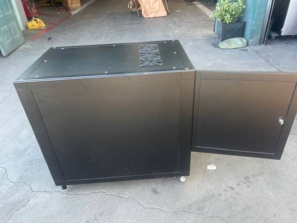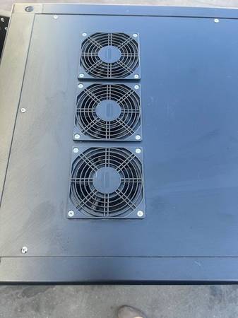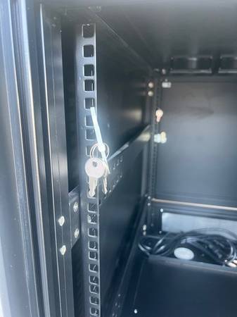 Locking server rack with cooling fans and power supply. Like new! Server specs are attached.