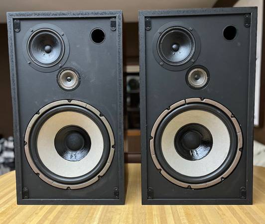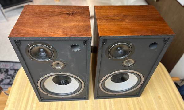 These speakers have beautiful cabinets ,and the original grilles are in excellent condition (no rips, holes, or snags). Both woofers have been refoamed, and the surrounds on the mid-range and tweeter are in excellent condition.