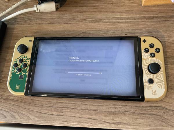 Nintendo Switch OLED Zelda edition, excellent condition with screen protector since opening. Includes everything it came with: dock, nintendo power cable, controller bracelet attachments