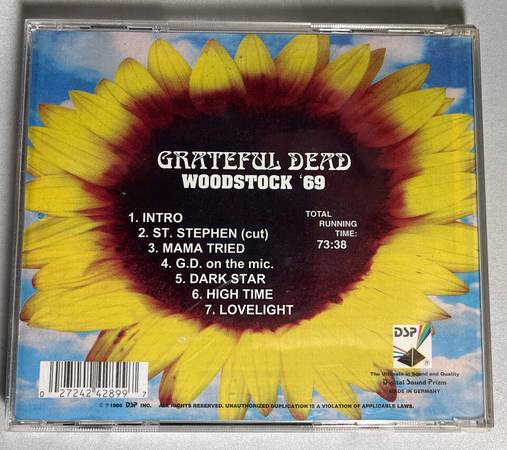 RARE The Grateful Dead Woodstock '69 Germany Import CD. 1. Intro 2. St. Stephen 3. Mama Tried 4. G.D. on the Mic. 5. Dark Star 6. High Time 7. Lovelight. If listed, it is available. Pickup in...