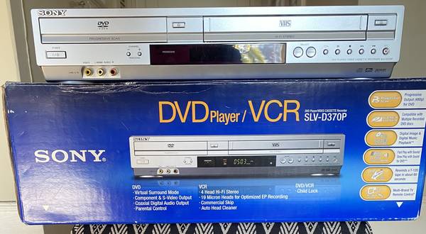FOR SALE - Combo DVD/VCR unit with component video output for progressive DVD playback. Unit used very little, stored in original box - works great! Includes remote. Playback support for DVD-Video, DVD-R/RW, DVD+R/RW, VCD, SVCD, CD-R/RW, JPEG CD, and MP3 CD; VCR can record programming while DVD plays; 8-event recording.