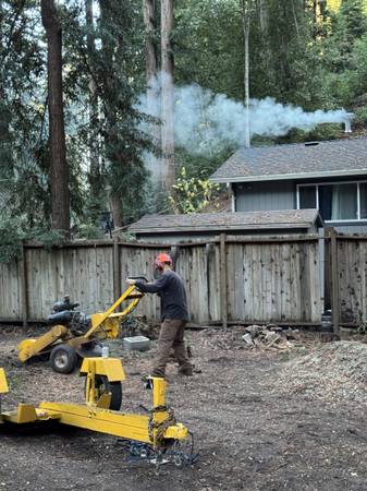 Chipping stump grinding defensible fire space clearing trimming firewood splitting weed whacking Fallen tree mess / storm cleanup