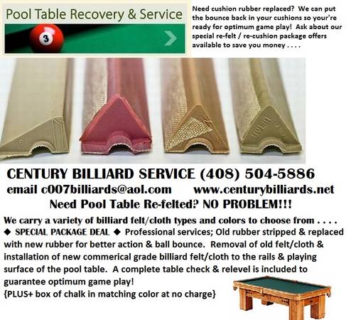 Serving the entire bay area since 1991, Century Billiards is one of the best in billiards -voted best in billiard services ELEVEN years in a row.