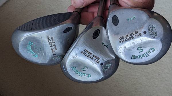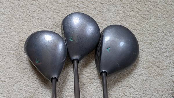 3 Callaway Big Bertha War Bird drivers, Ladies RH 11 degree, 3, 5 metal woods. Great condition. 3 driver comes with sock. Near Skyline Blvd. golf club clubs woman woman's golfing