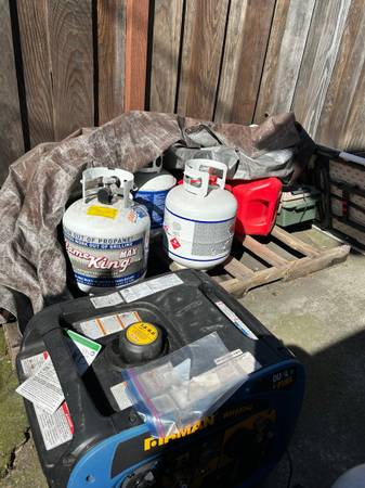 Firman Wh03242 model duel fuel 4000-3200 gasoline 3750-3000 propane pull start and push button start 1.8 gasoline capacity 8 hours run time full propane 9 hours run time full. Fully maintained with oil changes. All documented. 77-78 hours of run time on the engine. Propane tanks and gasoline cans for sale if wanted. $850 or best offer. Fully functional. Rain cover included.