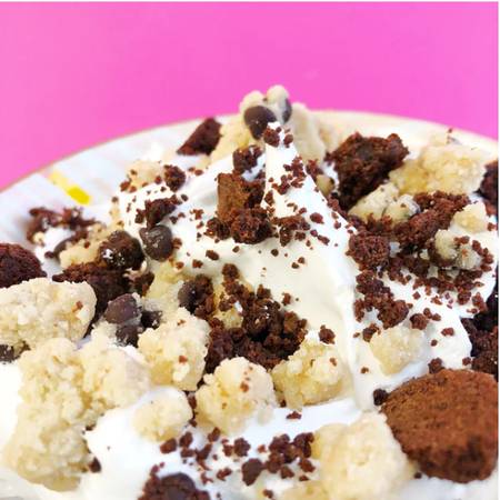 The ultimate dessert - edible cookie dough and chunks of dark chocolate brownie piled high to give you the ooey gooey treat you've been craving.
