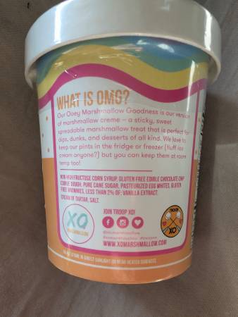 Our Ooey Marshmallow Goodness is our version of marshmallow creme -- a sticky, sweet spreadable marshmallow treat that is perfect for dips, dunks, and desserts of all kind. We love to keep our pints in the fridge or freezer (fluff ice cream anyone?) but you can keep them at room temp too!