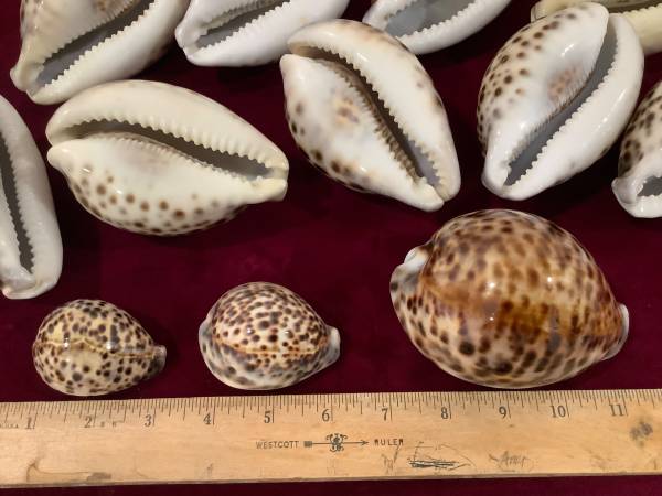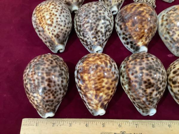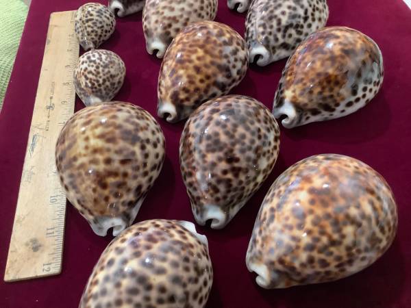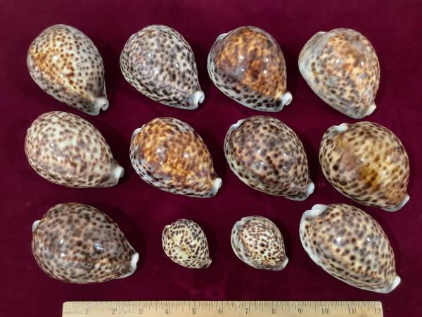 I’m offering 12 tiger cowries ( cypraea tigris ) for sale.