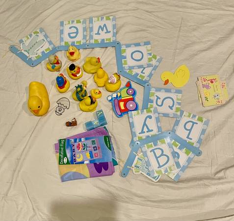* Several rubber ducks including a large one intended as a safety over the tub faucet to protect a baby's head (I used it for decorations)