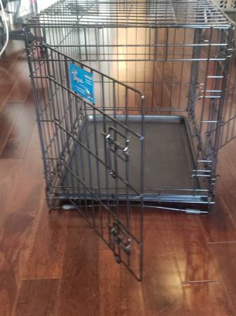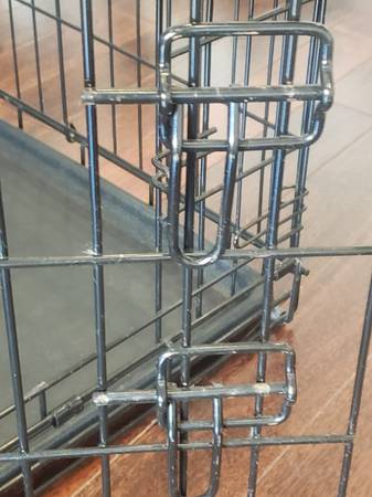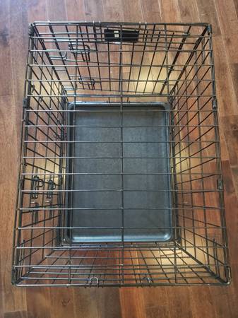 Good used condition. Removable pan that slides out at the bottom. Two doors make for easy entrance and exit. 24 inches long, 18 inches wide, 21 inches tall The size chart attached is a general guide...