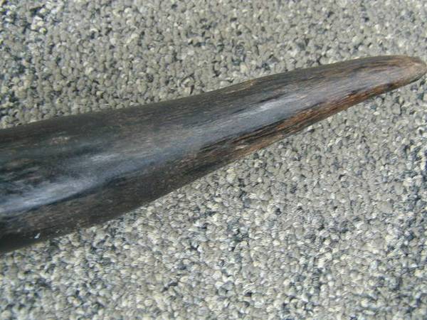 19" Long Bull Horn. Good condition. One small rough spot. Near Skyline Blvd. in Pacifica cow steer antler antlers longhorn bullhorn cowboy cattle black powder man cave decor