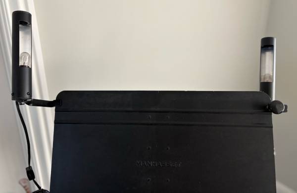 C-Clamp on lights with switches for Music Stand, Pianos, Aquarium Tanks and more. Tested and works perfectly fine. Selling in pairs. Does not include Music Stand.