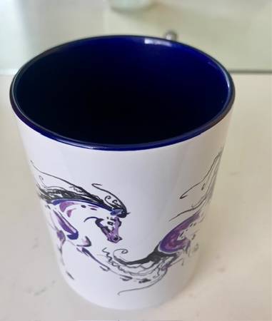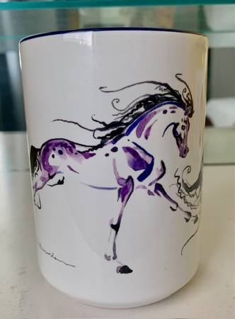 Two horses wraps around the mug. 15 oz size microwave and dishwasher safe.