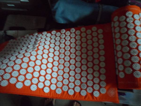 Orange acupressure mat with pillow for relaxation and pain relief. pick up in redwood city near woodside and alameda