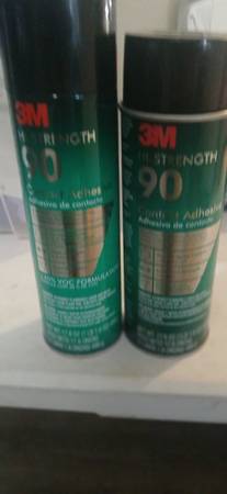 I HAVE 2 CANS OF 3M HI-STRENGTH 90 CONTACT ADHESIVE SPRAY CANS SELLING BOTH CANS FOR $6.00 BUCKS SEE PICS AND MESSAGE ME