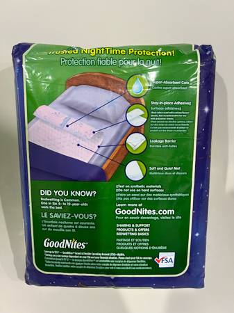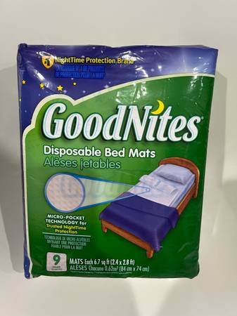 🛏️ PK/9 GoodNites Bed Mats – 30” x 36” • Condition: Brand new • Size: 30” x 36” • Perfect for nighttime protection Local pickup (Foster City). Cash or Venmo accepted.