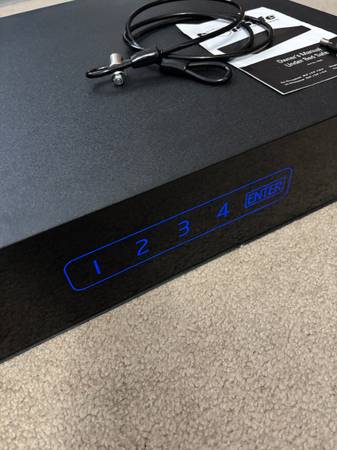 Touch screen. Used for a year. Includes instructions, tether, safe mat, and 2 keys. Code can be reset and changed to whatever you like. Great condition. Fully functional. Originally bought for 400....