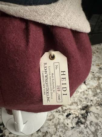 R. John Wright Heidi and her white goat. All felt doll. She measures approx 18” tall and is from 2000. Her number is 269/500. They are in excellent condition. They were displayed behind glass in my non-smoking Home. They both have their boxes and certificates. Asking $1000 cash or Zelle and pick up is in South San Francisco.
