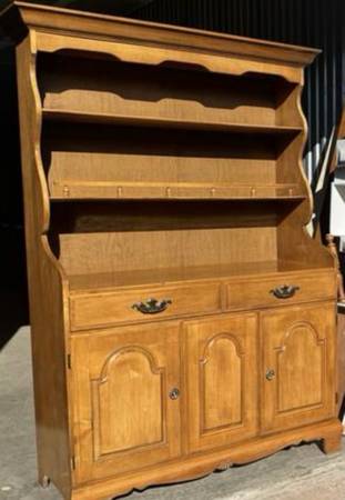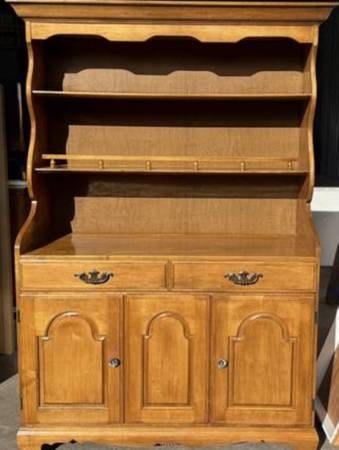 Vintage Solid Maple Colonial Style Two Piece Hutch Cabinet 42.5" wide x 18" deep x 66" tall Click "more ads by this user" to see more credenzas and hutches $60 curbside delivery for reasonable...