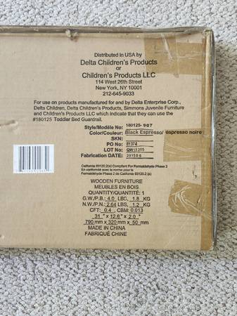This Delta Children Toddler Guardrail / Bedrail is brand new, never used or opened (package only opened for photos). Beautiful rich dark brown color (Black Espresso). Strong and sturdy wood...