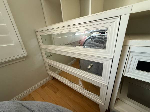 Exclusive to Z Gallerie. KILN-DRIED HARDWOOD. Stays free of splits and won't warp, twist, or break over time. Hardwood frame is corner-blocked for stability and strength. Drawers feature dovetail joints and fully extending mounted metal glides. Drawer fronts feature stepped moulding and beveled mirrors. Plastic glides on the legs to protect floors. Imported. Dimensions: 40W x 22D x 36H