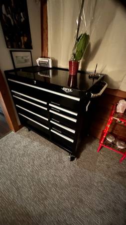 This posting is for aquality rolling bottom cabinet. It's built from cold, rolled steel tough to withstand heavy loads and last four years to come. Use as a garage workbench or utility drawer chest. I used it specifically to hold my skin care supplies in my treatment room as I am an aesthetician. The unit itself is in like new, perfect working condition. The aesthetic of the piece is like new except for one small circular scratch mark on the top (pictured). Brand new retail price is $1900, plus over $250 freight charge from the website. See actual website link below. Fish piece also comes with two of the original keys and all original in drawer liners.