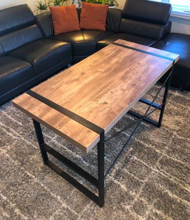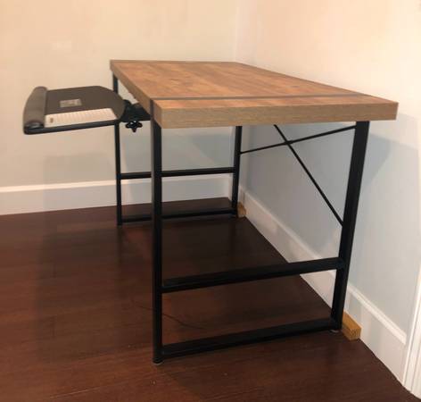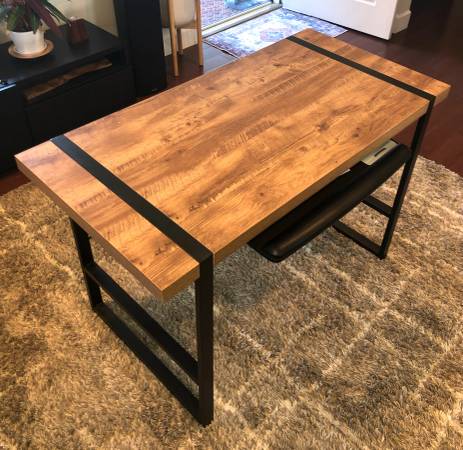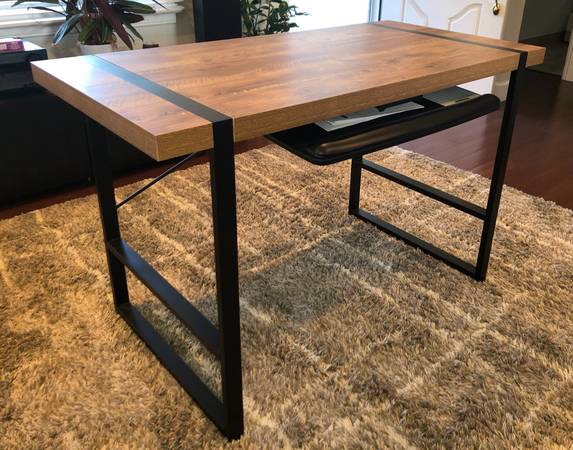 47” Rectangular Brown/Black Office Computer Desk Wood/Steel.