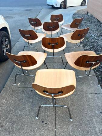 π The iconic Eames LCM Chair sits at the nexus of function and art. This metal base lounge chair began as an experiment, created via a machine that molded plywood with the help of heat and a bicycle pump. The resulting design, as simple as it is comfortable, is low slung and conforms to your body. Rubber shock mounts between the back, seat, and frame buffer against any jarring movements. It's the perfect addition to any living space in your home.