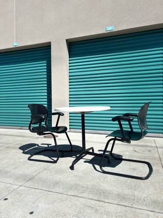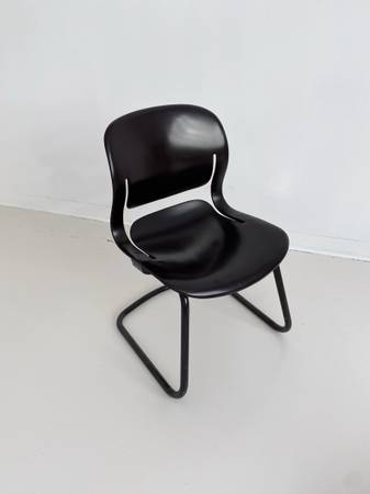 Features a rare eggplant colored fiberglass-reinforced polyester resin seat and cantilever aluminum frame.