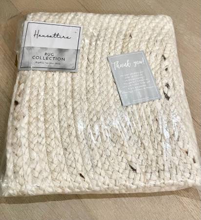 New in original packaging. 3' round jute rug, natural color. Price is $20 firm. Pick up in menlo Park only.