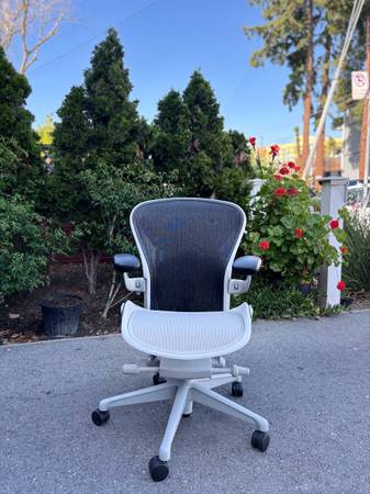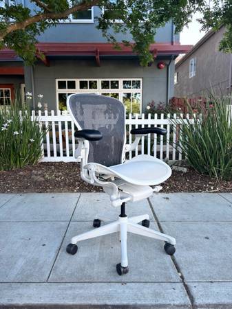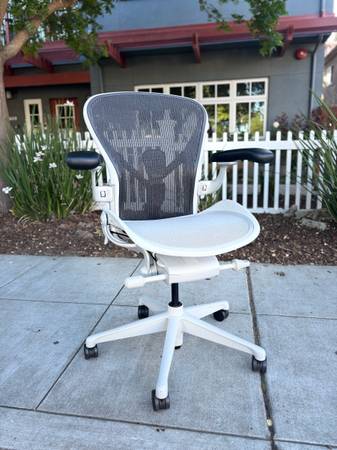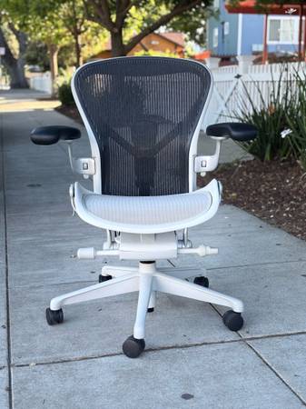 ⚫️ Herman Miller Remastered Aeron Size B Mineral White frame Black back support Fully adjustable arms, Posture fit SL Tilt limiter, seat angle, Custom-made Fully functional 💲750 Cash Local delivery...