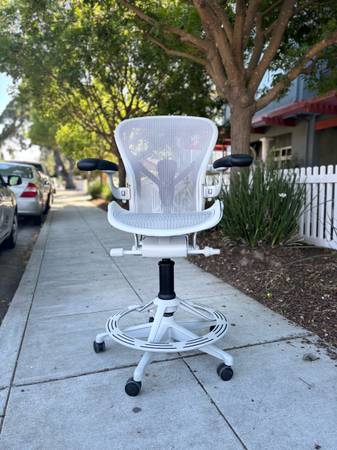 🌪️ Herman Miller Aeron Stool Chair White Mineral Color Posture fit SL, Height adjustable Plus Pivot arms, Tilt limiter and Seat angle, Quiet Roll Casters, Fully Functional. 💲950 Cash or Zelle Local...