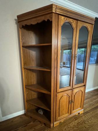 Solid oak entertainment center, hutch, coffee table and two side tables. Free plasma TV and the stand. $1,000 OBO for all. Willing to sell pieces individually.