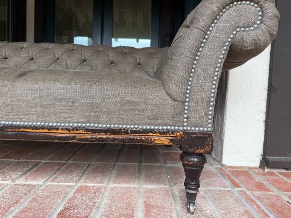 This is a high end sofa that we paid close to 10k for 6 years ago. Brand is on one of the pictures. Very beautiful detail. There are some stain on the seat part but can be professionally cleaned or new upholstery. Other than that excellent condition and high quality.