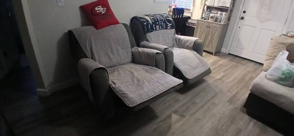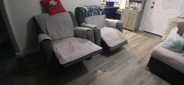 I HAVE 2 ASHLEY FURNITURE LARGE RECLINING CHAIRS no tears no stains .I AM ASKING $275.00.00 FOR BOTH OF THE CHAIRS