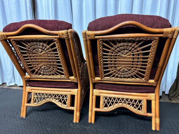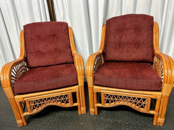 Rattan Armchairs, Maroon Cushions, SunBear brand, Malibu model EUC -...