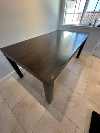 A very sturdy wood dining table. It’s for 6 chairs. 71Lx39Wx30H $150 only table It was made on Malaysia. It’s a very nice table,