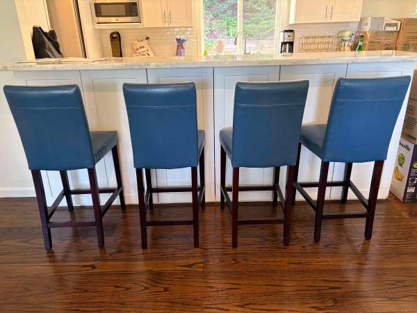 2 nearly new leather counter stools from Pier One. Each was bought for $400 plus tax. Our new place has bar height so these are too short so unfortunately I need to re-home this lovely azure blue stools. The stools were in storage for most of the time so they have barely been used and great condition. $200 each. Cash only.
