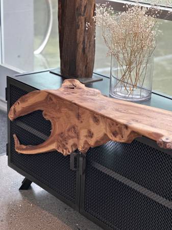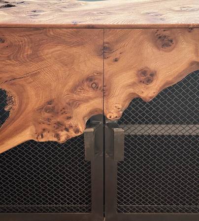 Live Edge elm media console. Industrial steel and Kent design mesh meet Mother Nature 72x16x24 Custom sizes and designs available. Delivery in the Bay Area is Included. Custom, elm, live edge, slab,...
