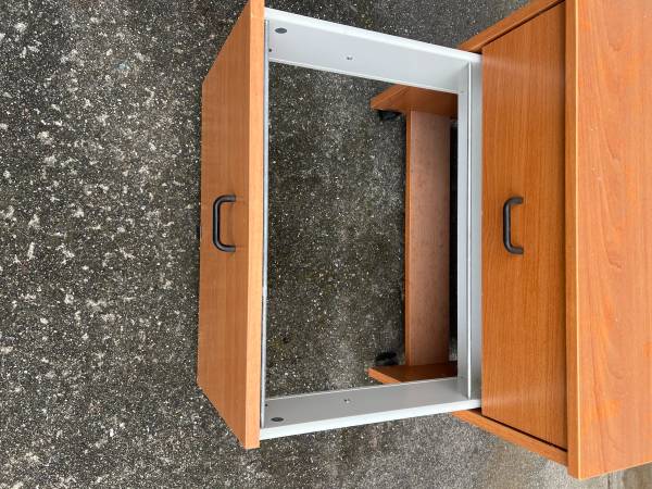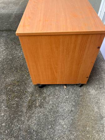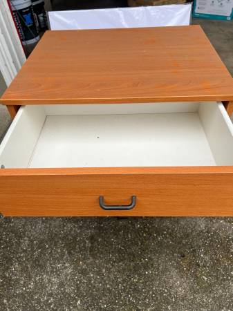 FREE rolling cabinet, two drawers, has file folders hanging rods, in good working shape. Does show signs of wear. Can arrange pick up in San Mateo