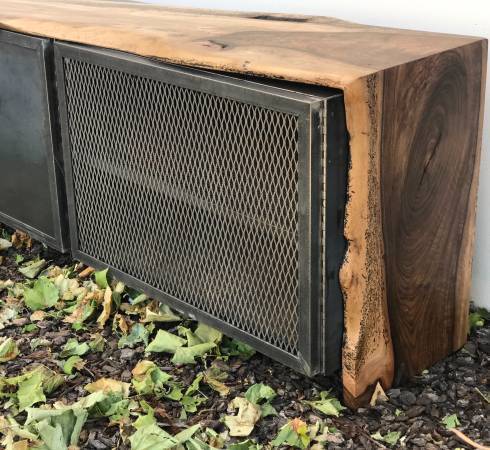 Modern walnut media console. Industrial steel base 84x16x20 Walnut. Credenza, cabinet, media console, Entertainment center, tv stand, rustic, industrial