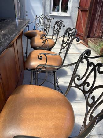 Black Marble Top Bar Mahogany wood 4 Ethan Allen Leather barstools " bar stools originally retailed for $760 each" Very good condition. No tears or wear, kept indoors and always leather conditioned.