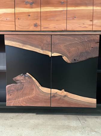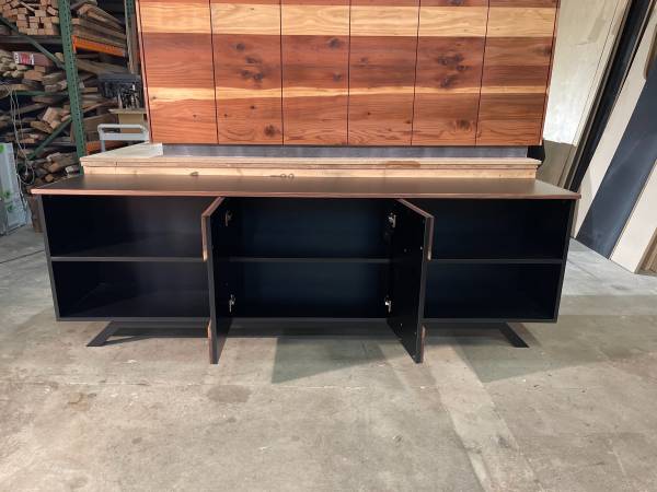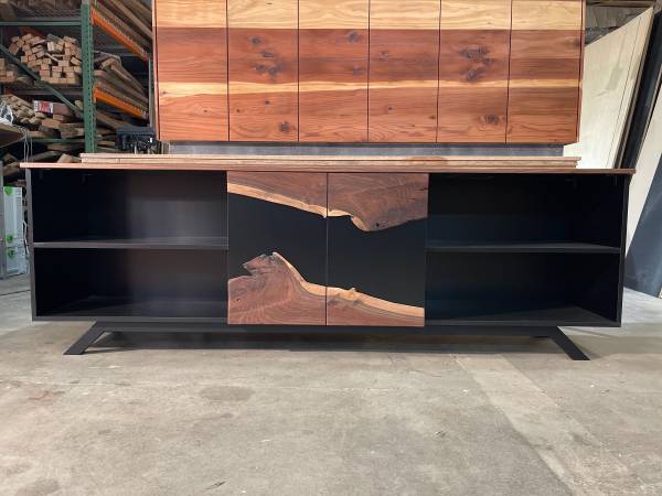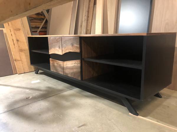 Modern walnut media console. Industrial steel base 84x16x30 Walnut. Credenza, cabinet, media console, Entertainment center, tv stand, rustic, industrial