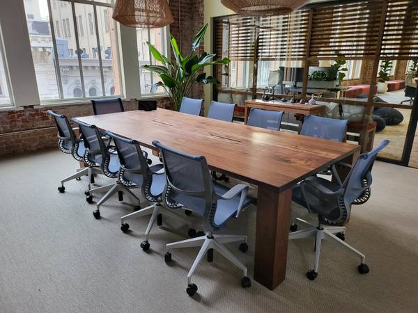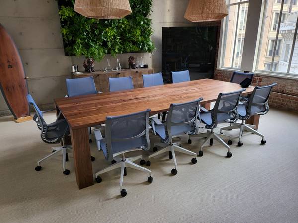 Walnut straight edge Conference table. Parsons style wooden legs. 120x48x30 Custom designs and sized available. Delivery in the Bay Area is included. Custom furniture, interior design, cafe table,...