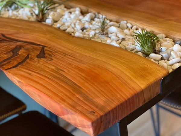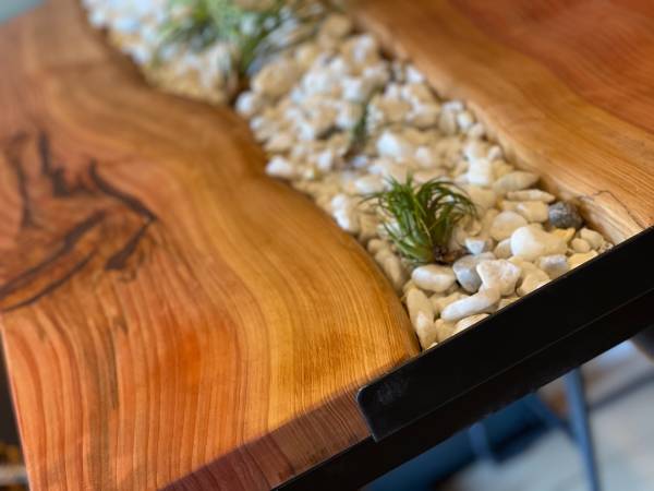 Live edge fir rock garden modern bar table. Industrial steel base. Airplants included 60x26x42 Custom sizes and designs available Delivery in the Bay Area is included Dining table, conference table,...