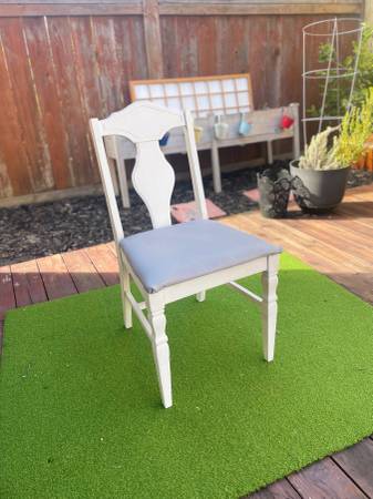 Freshly painted with a full-size reupholstered seat cushion, this petite and lightweight chair is ideal for light-duty use.